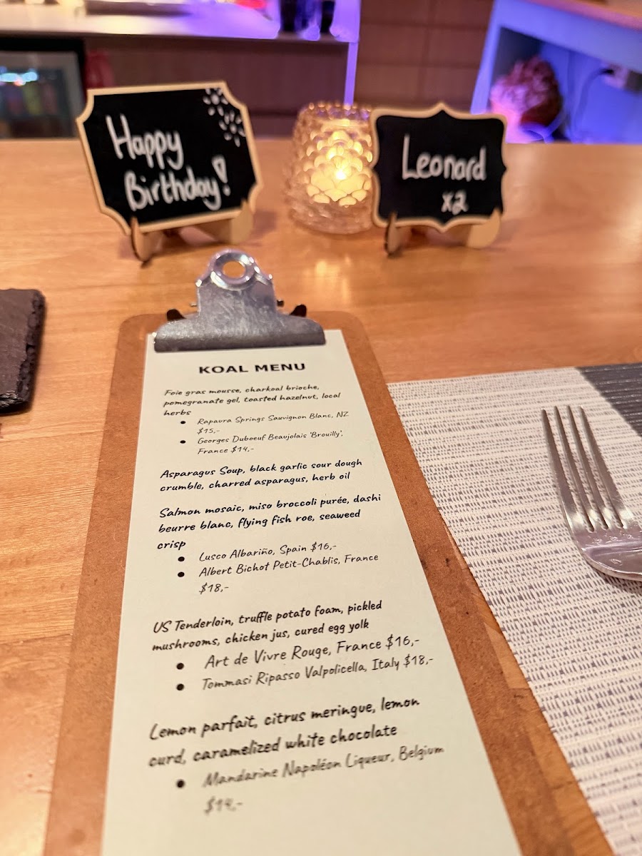 “ Having been to Aruba four times, Koal was truly our best dining experience to date. From the moment we walked in, Chef Albert Raven and Tom Rensen made us feel like welcome friends. Chef Albert's mastery of his craft is incredible. His work is so intentional, and it's not just about technique; he thinks about how each dish will have the perfect taste, texture, and presentation while also telling a good story. I loved hearing him speak about his dishes. The salmon mosaic, for example, was a work of art. The way he subtly hinted at a sushi roll, with the delicate, non-raw salmon beautifully formed and a green miso puree that resembled wasabi, was brilliant. It was clever without being pretentious and showed a level of culinary storytelling that we haven't seen before. Tom's warm and down-to-earth hospitality, combined with Albert's passion, created a truly unique and intimate atmosphere. My husband and I left having made great connections with other diners and had so much fun. It felt less like a restaurant and more like an unforgettable dinner party. We will always go back to Koal on every trip to Aruba. ”