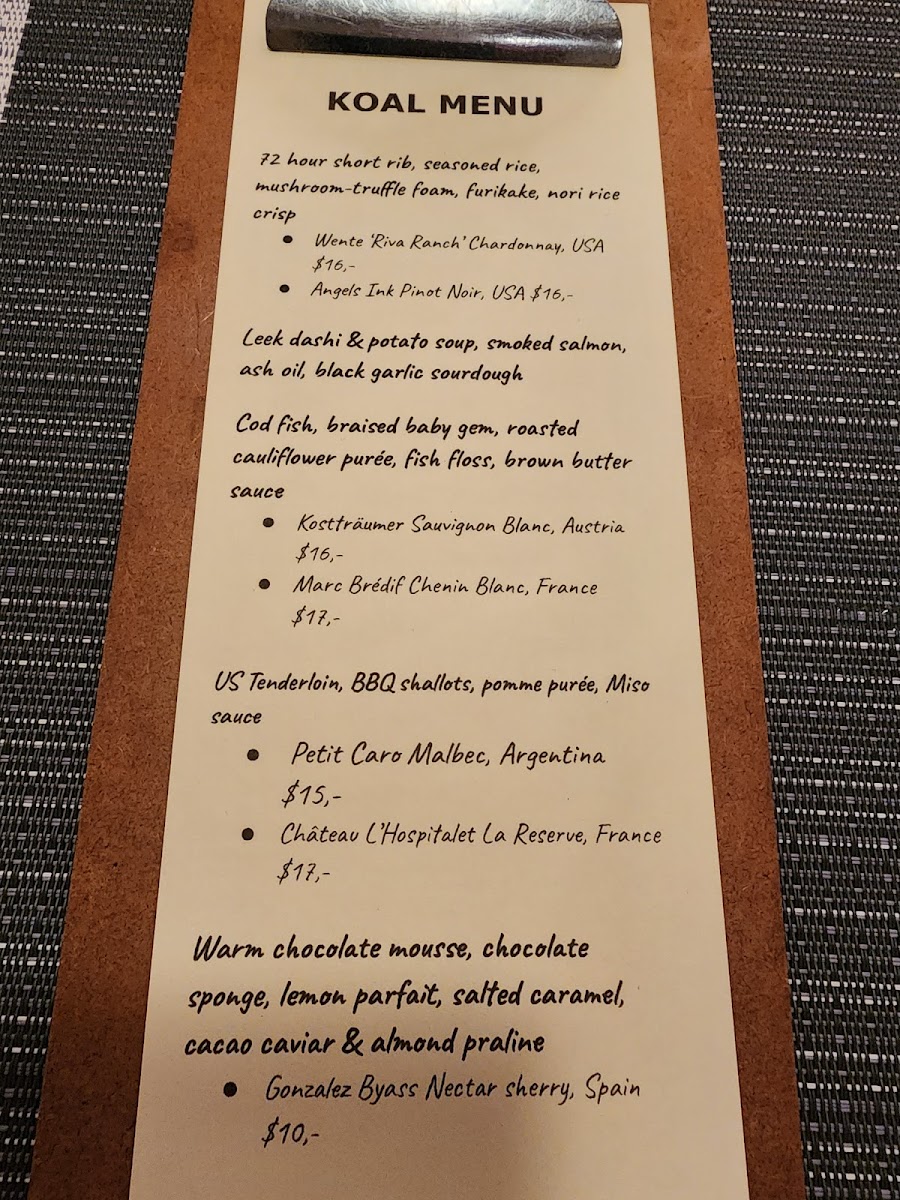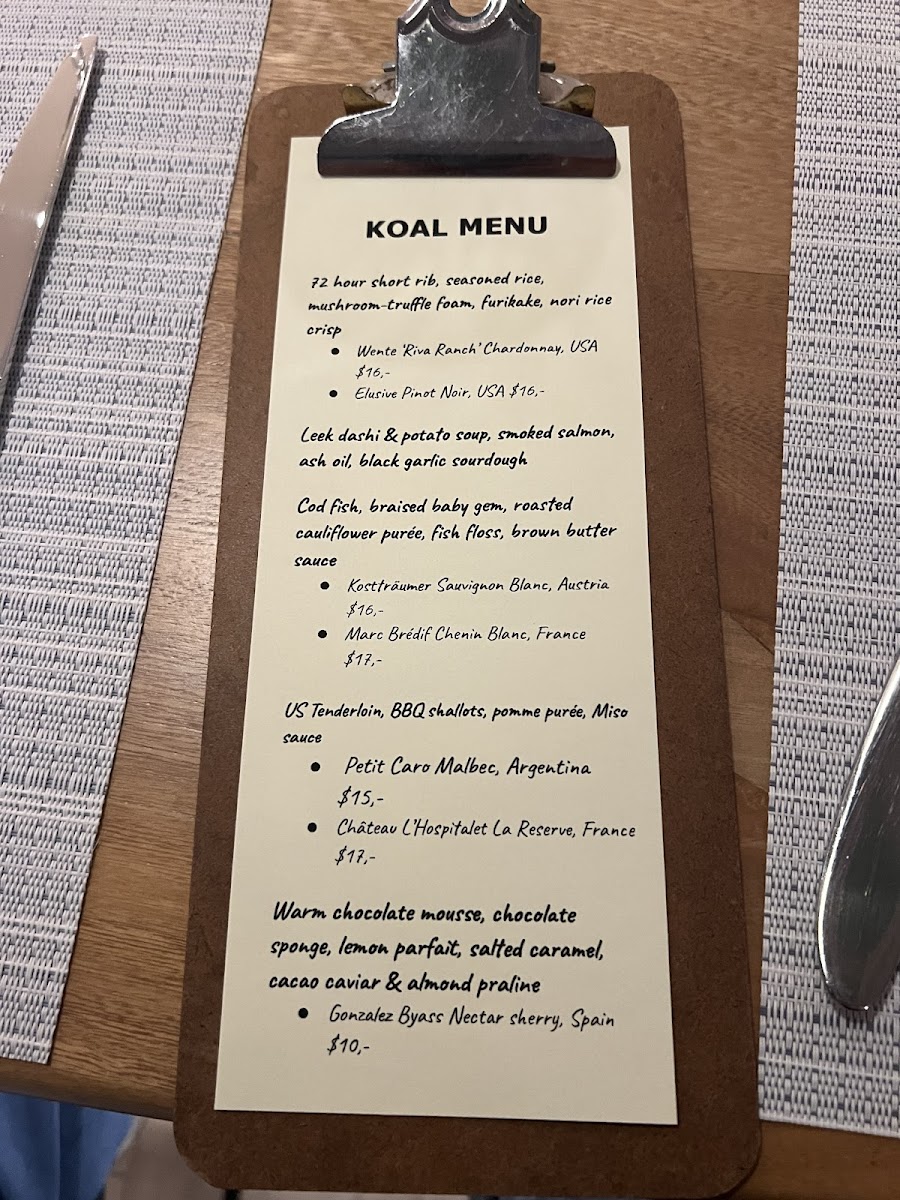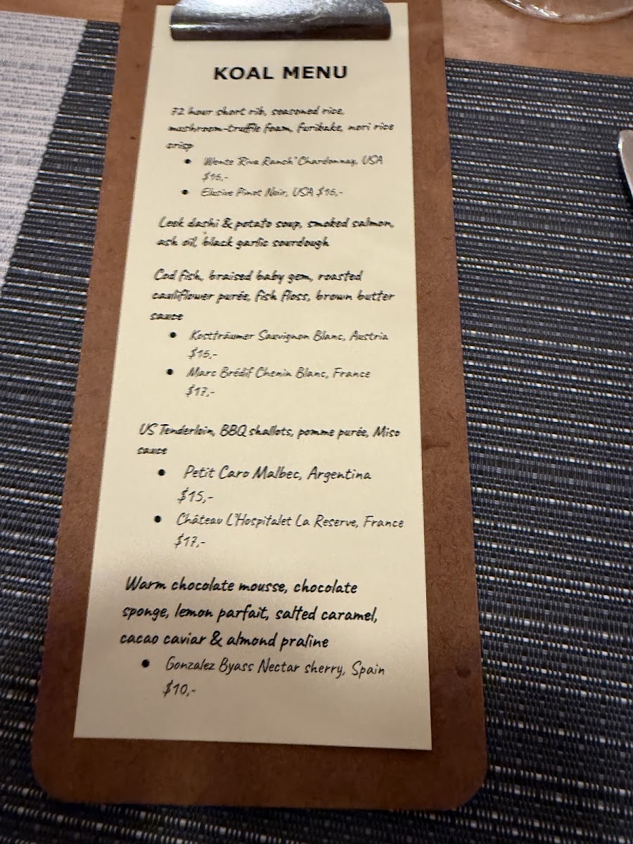 “ I had the absolute pleasure of dining at KOAL while in Aruba, and it was a fantastic, one of kind experience from start to finish! This is a chef's table restaurant with a prefix menu where each course is prepared, explained, and served directly by the chef. Tom, our host, provided exceptional hospitality, making us feel welcomed and well-cared for throughout the evening. His suggestions for wine pairings were spot on, and everything he recommended was absolutely delicious, perfectly complementing the flavors of each course. Albert, the chef, truly outdid himself with a spectacular 5-course menu that left us speechless. Every dish was amazing, thoughtfully crafted and bursting with flavors that were a pleasure to eat. The attention to detail in both the presentation and the taste of each course was remarkable. It was clear that Albert's passion for culinary excellence shines through in every dish. It was also nice chatting with Albert at the end of the evening, learning about his experience and time on the island. The atmosphere of KOAL is warm, inviting, and perfectly complements the incredible dining experience. This restaurant is a must-visit for anyone looking for a memorable culinary experience in Aruba. I cannot recommend KOAL enough—an absolute gem! We will definitely be back. ”