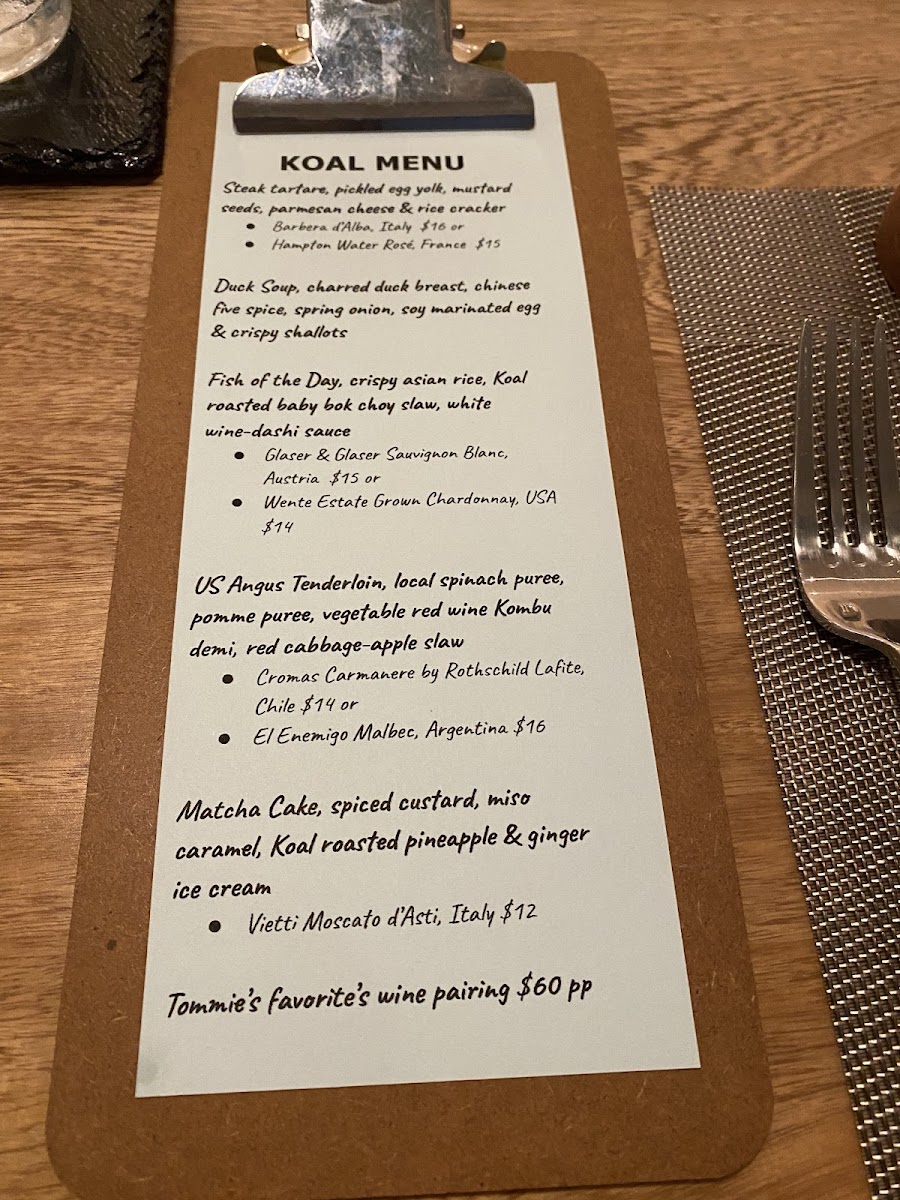 Additionally, KOAL's ambiance plays a crucial role in enhancing the overall experience. Housed in an older historic building, the décor reflects a sophisticated yet welcoming setting that invites conversation and relaxation. With a focus on rotating the menu seasonally, guests are encouraged to return to discover new tastes and surprises on each visit.